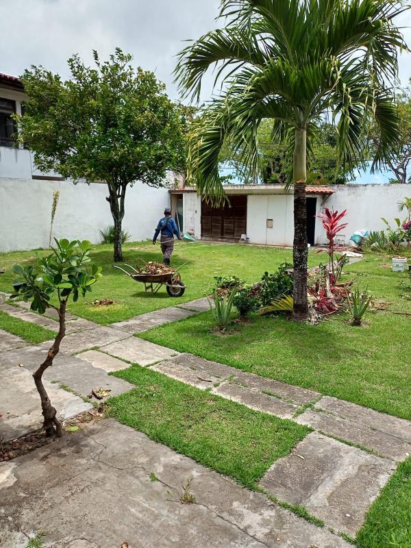 Alugo casa com 3/4 suítes, num lote terreno com 900 m2, compartilhada com mais 2 casas independentes, com churrasqueira, chuveiro e jardim.